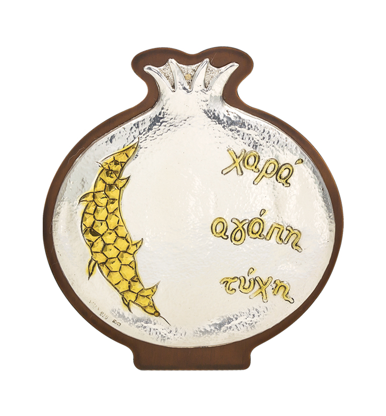 Ρόδι ασημένιο 925° με ευχές σε διάσταση : 13 x 11 εκ.