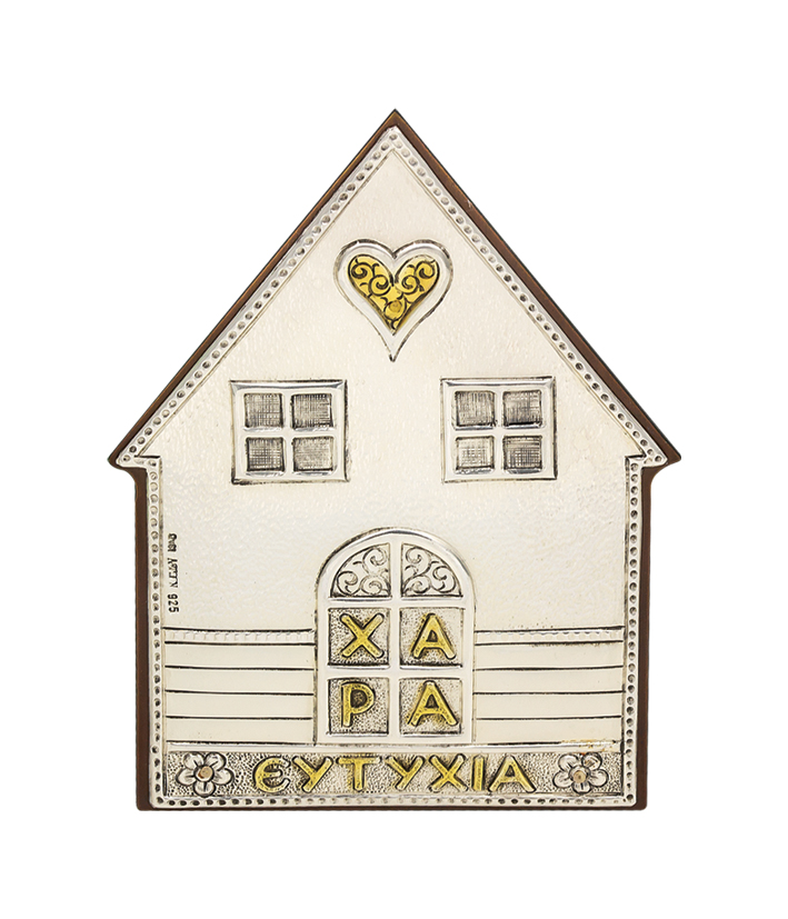 Σπιτάκι ασημένιο 925° με ευχές σε διάσταση : 12,5 x 9 εκ.