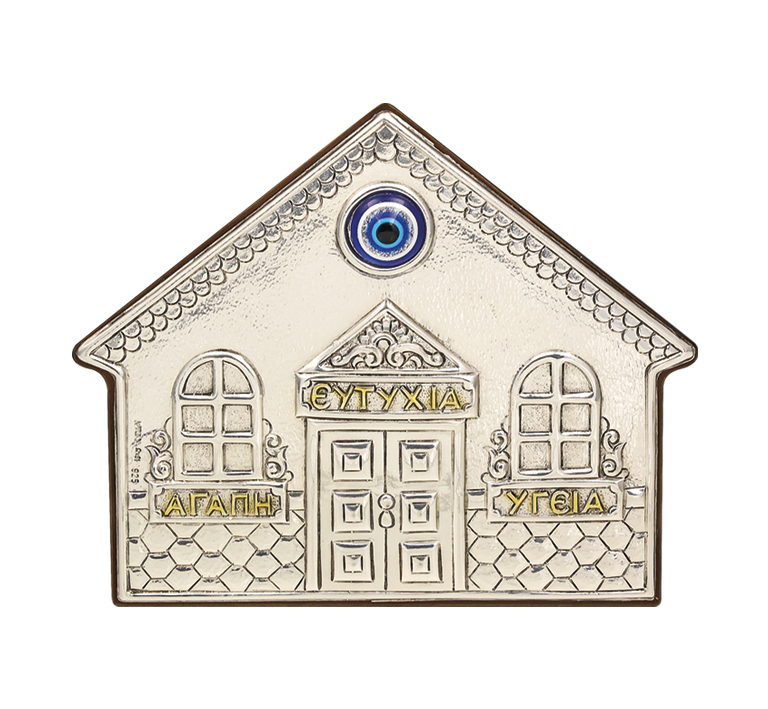 Σπιτάκι ασημένιο 925° με ματάκι και ευχές σε διάσταση : 13,5 x 11,5 εκ.
