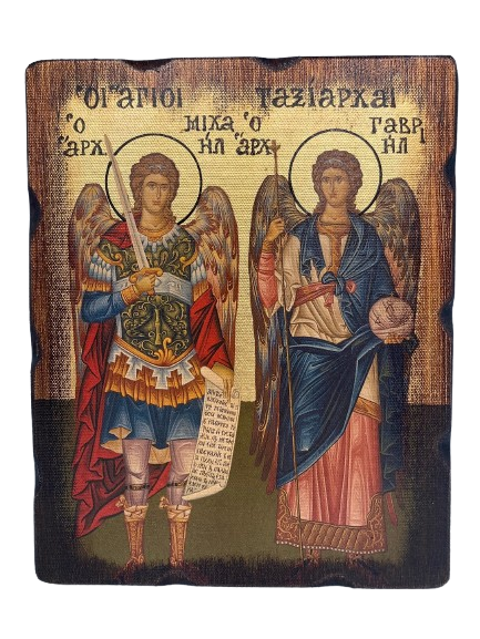 Ταξιάρχες σε ξύλο έλατο, καμβά με χειροποίητη παλαίωση, φύλλο χρυσού και διάσταση : 15 x 10 εκ.