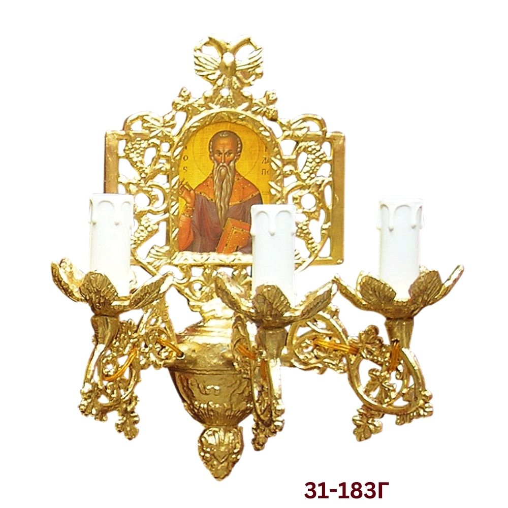Απλίκα αλουμινίου με εικόνα Αγίου και 3 φώτα σε 2 αποχρώσεις και διάσταση : 34 x 32 εκ.