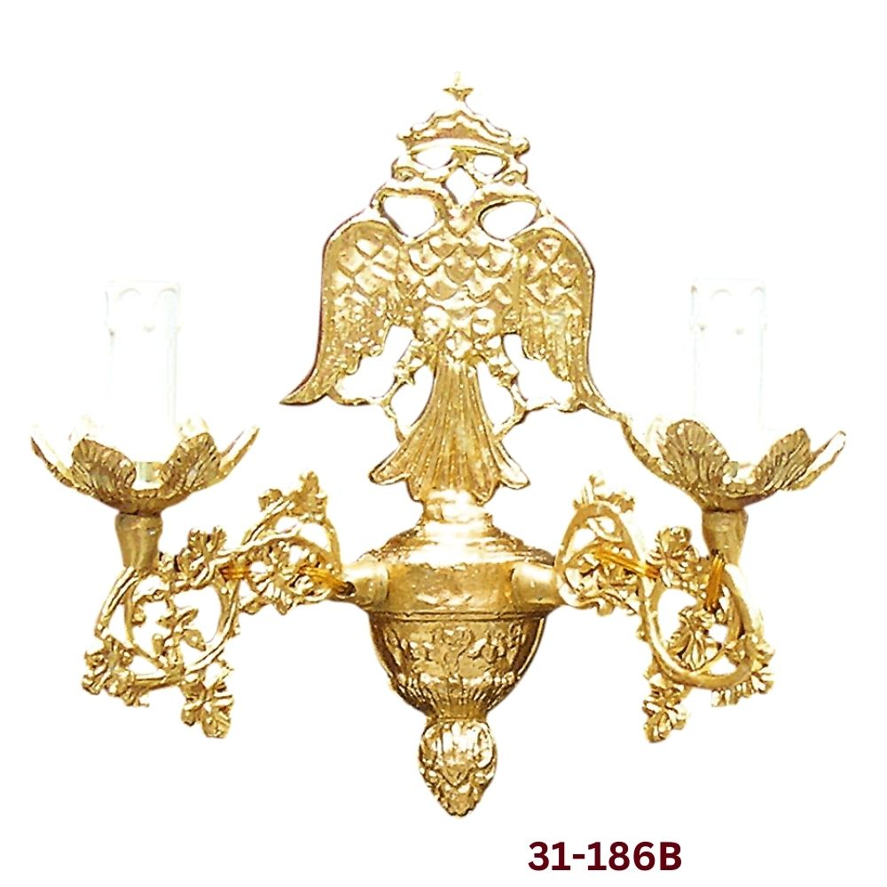 Απλίκα αλουμινίου με σχέδιο τον δικέφαλο αετό και 2 φώτα σε 2 αποχρώσεις και διάσταση : 32 x 32 εκ.
