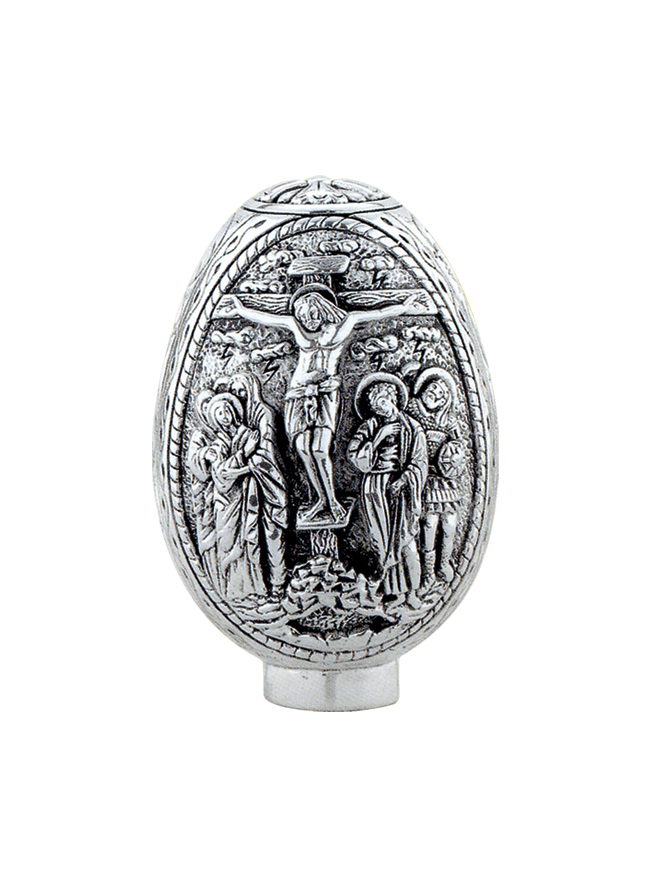 Αυγό ασημένιο 925° με Σταύρωση και Ανάσταση σε διάσταση : 9,5 εκ.