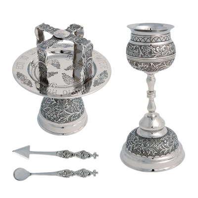Δισκοπότηρο ορειχάλκινο σκαλιστό επινικελωμένο χωρητικότητας 250 ml σε 3 μεγέθη. Άγιο Ποτήριον, Δισκάριο, Αστερίσκος, Λόγχη, Λαβίδα