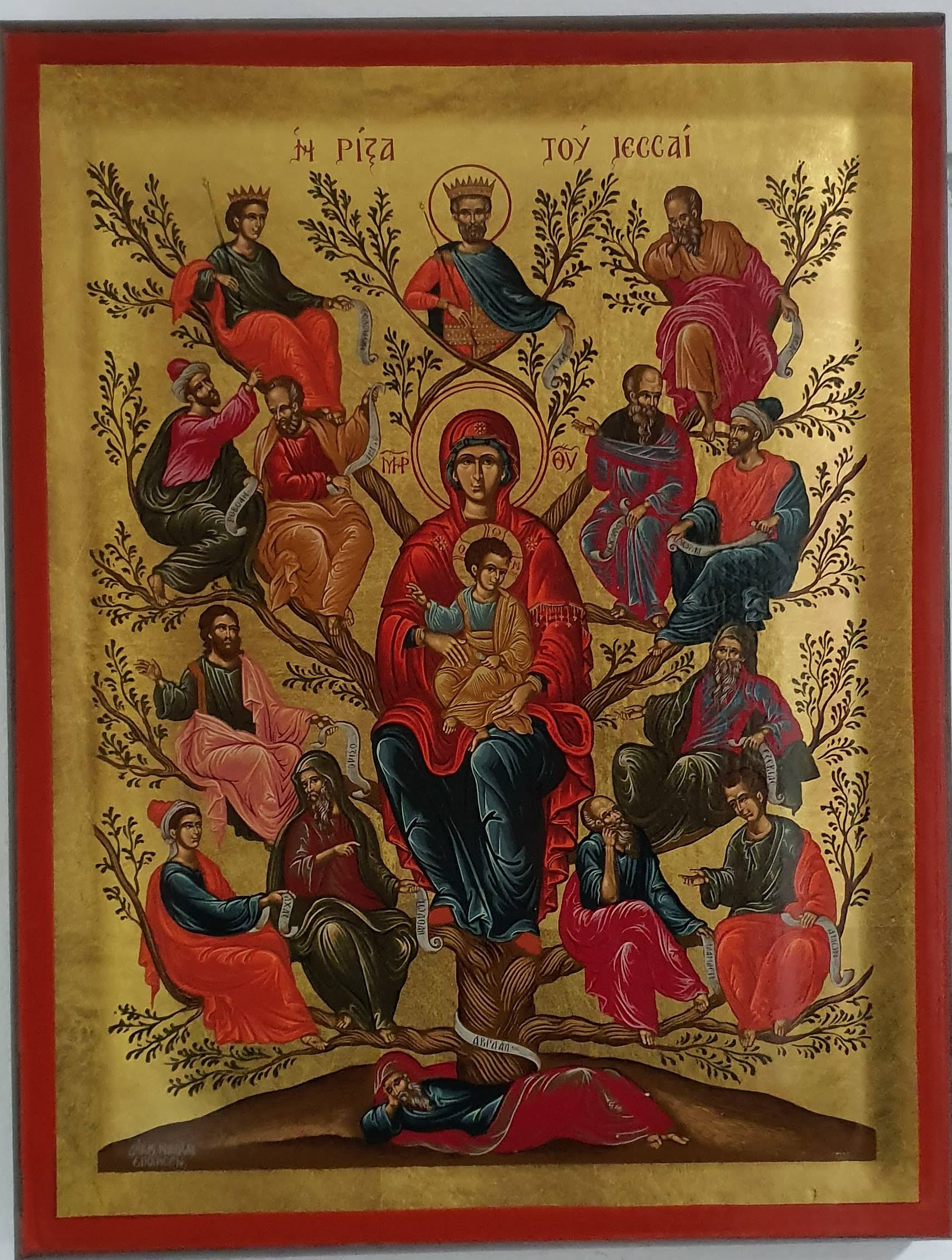 Η ρίζα του Ιεσσαί με φύλλο χρυσού σε ξύλο πεύκο ρόμπολο και διάσταση : 20 x 16 εκ.