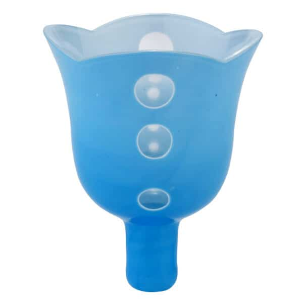 Καντηλόκουπα από φυσητό γυαλί χειροποίητο σε χρώμα γαλάζιο και διάσταση : 10,5 x 8 εκ.