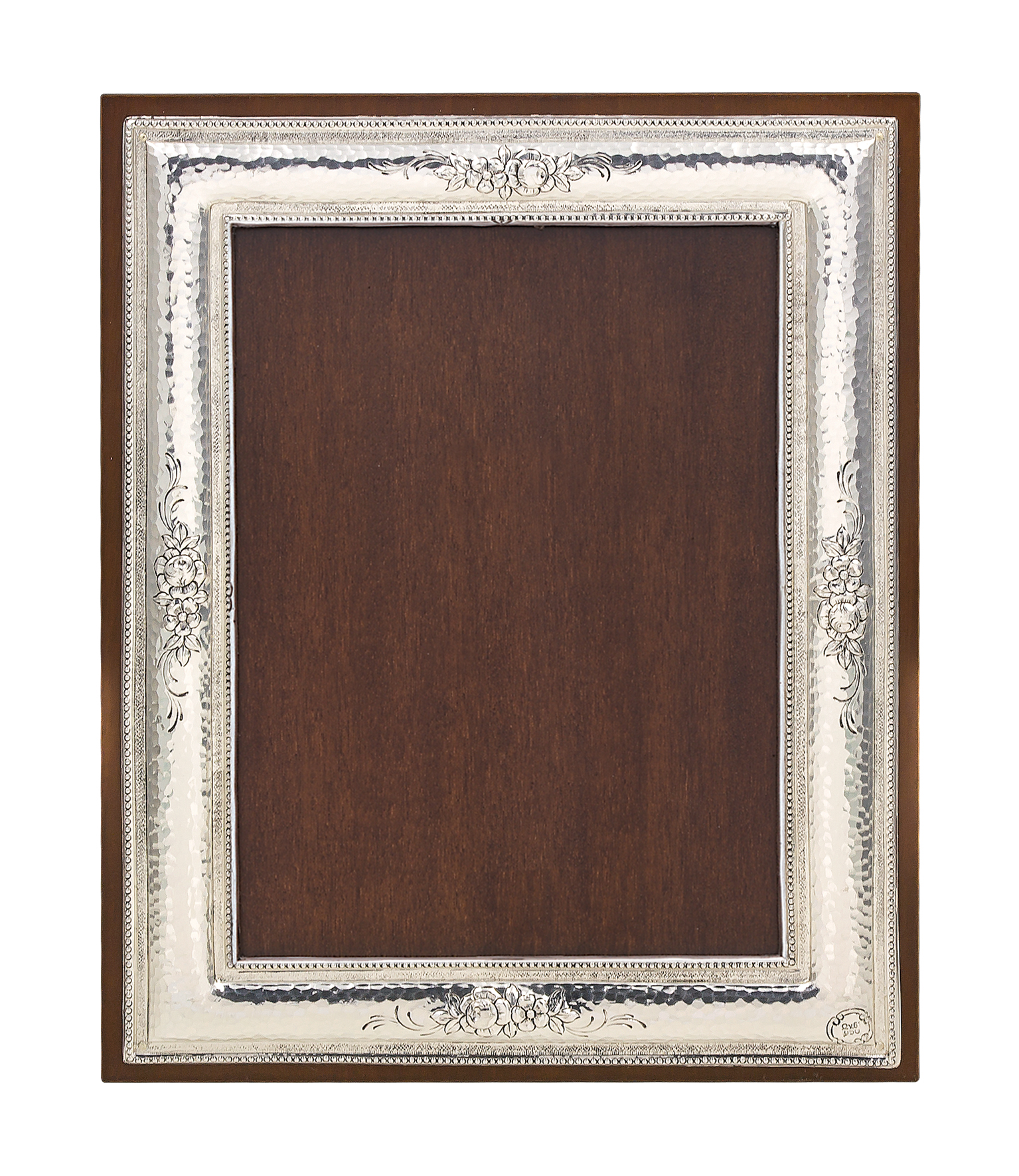 Κορνίζα ασημένια 925° με ξύλο και 4 λουλούδια σε 3 διαστάσεις