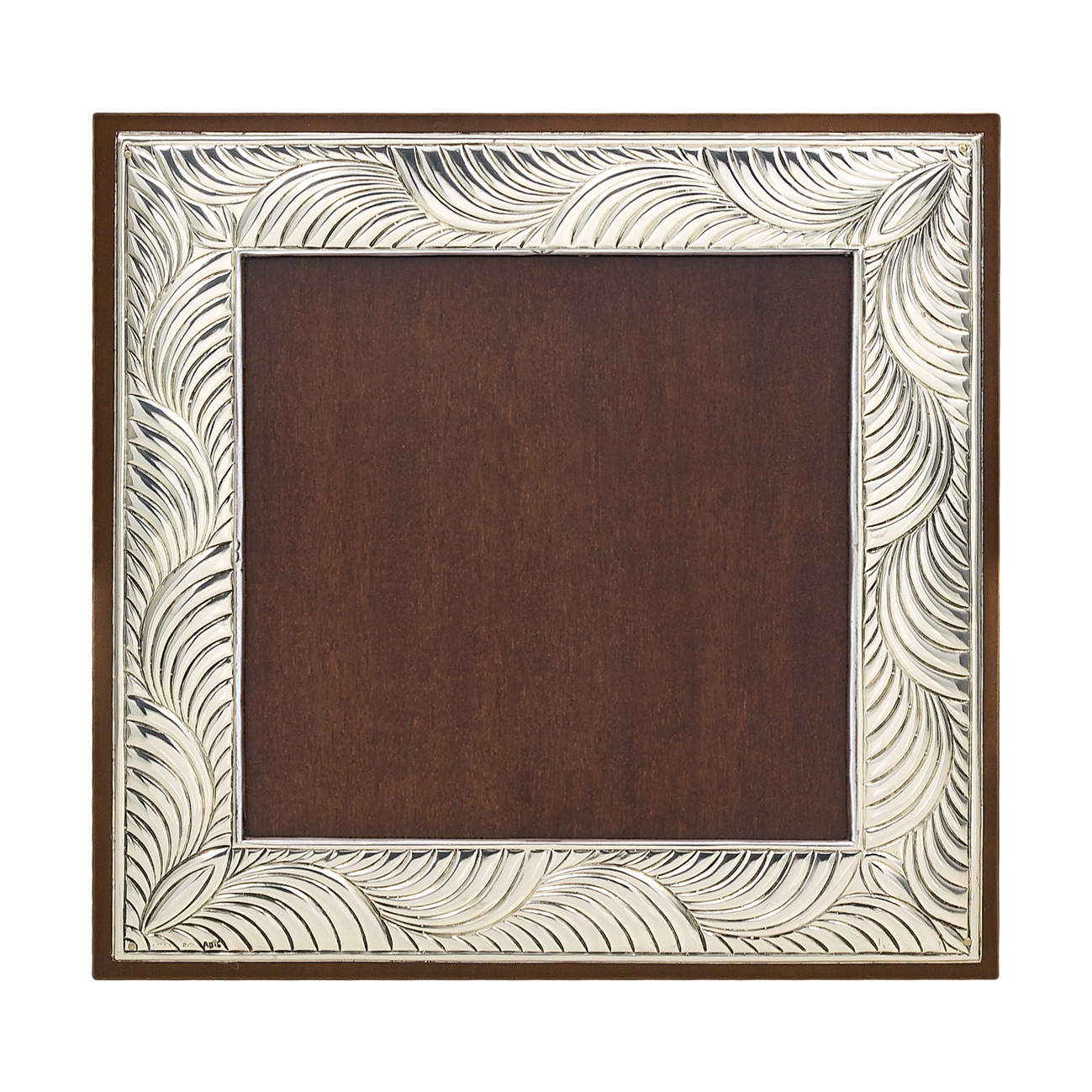 Κορνίζα ασημένια 925° με ξύλο και κυματιστό σχέδιο σε διάσταση : 17 x 17 εκ.