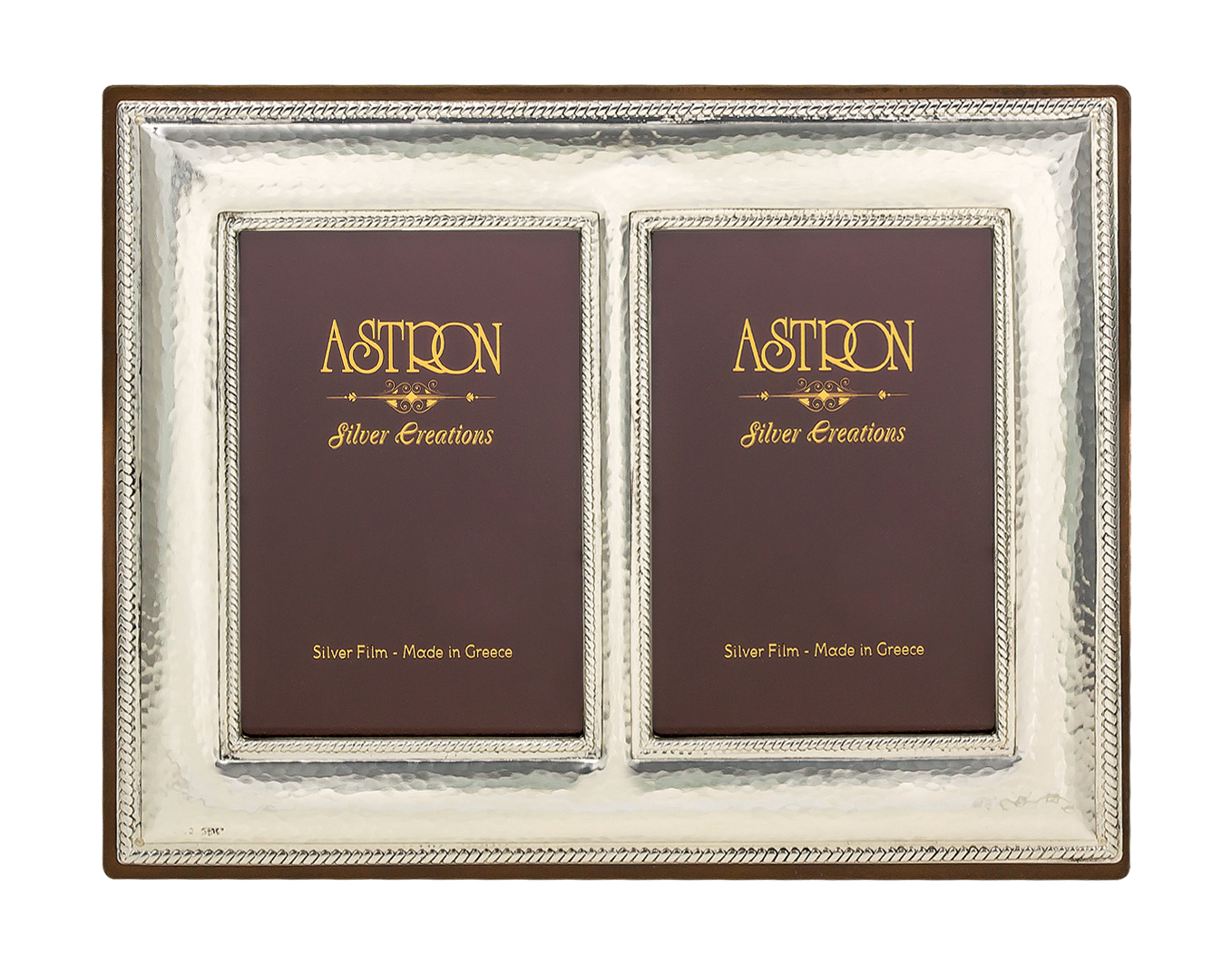 Κορνίζα επάργυρη διπλή με ξύλο σε 2 διαστάσεις