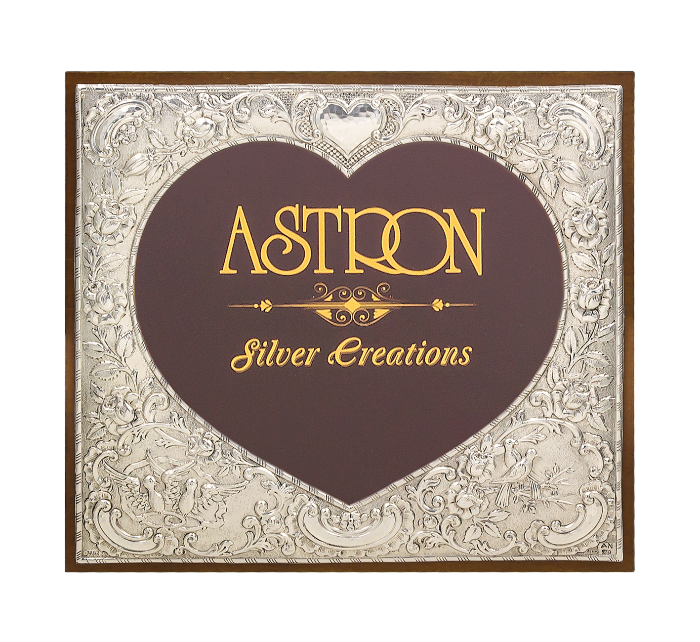 Κορνίζα επάργυρη με ξύλο και σχέδιο καρδιάς στο κέντρο σε διάσταση : 18 x 20 εκ.