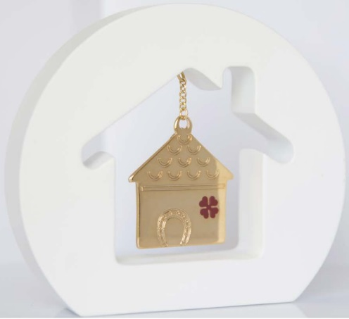 Ξύλινο επιτραπέζιο διακοσμητικό με κρεμαστό σπίτι