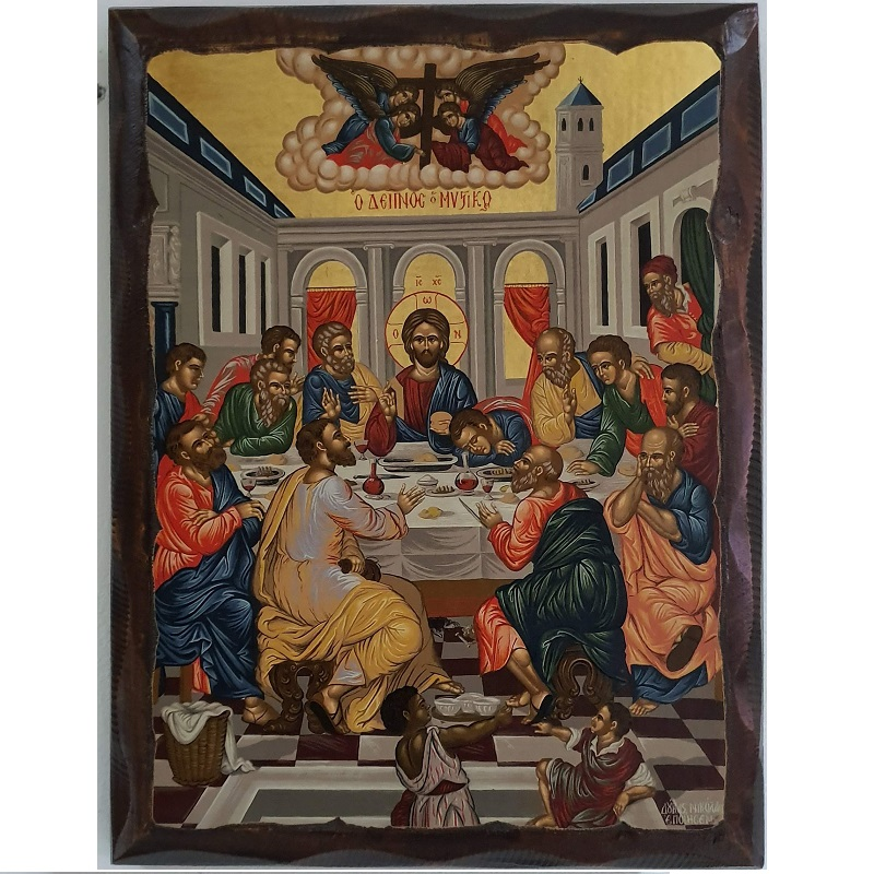 Μυστικός Δείπνος σε καμβά με φύλλο χρυσού σε ξύλο πεύκο και διάσταση : 15 x 12 εκ.