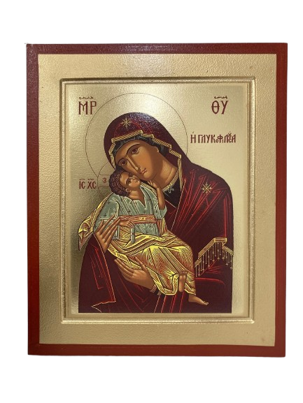 Παναγία Γλυκοφιλούσα σε σκαφτό ξύλο mdf με χρυσοτυπία και διάσταση : 20 x 15 εκ.