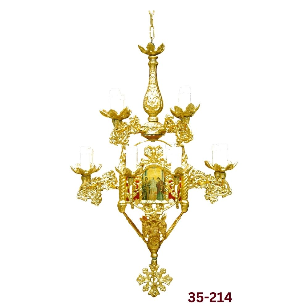 Πολυέλαιος αλουμινίου με εικόνα αγίου με 13 φώτα σε 2 αποχρώσεις και διάσταση : 82 x 53 εκ.