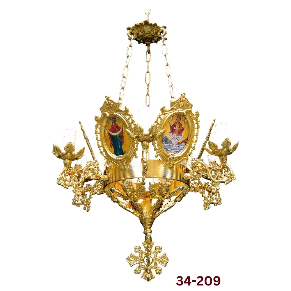 Πολυέλαιος αλουμινίου με κορνίζα αγίου με 7 φώτα σε 2 αποχρώσεις και διάσταση : 50 x 57 εκ.
