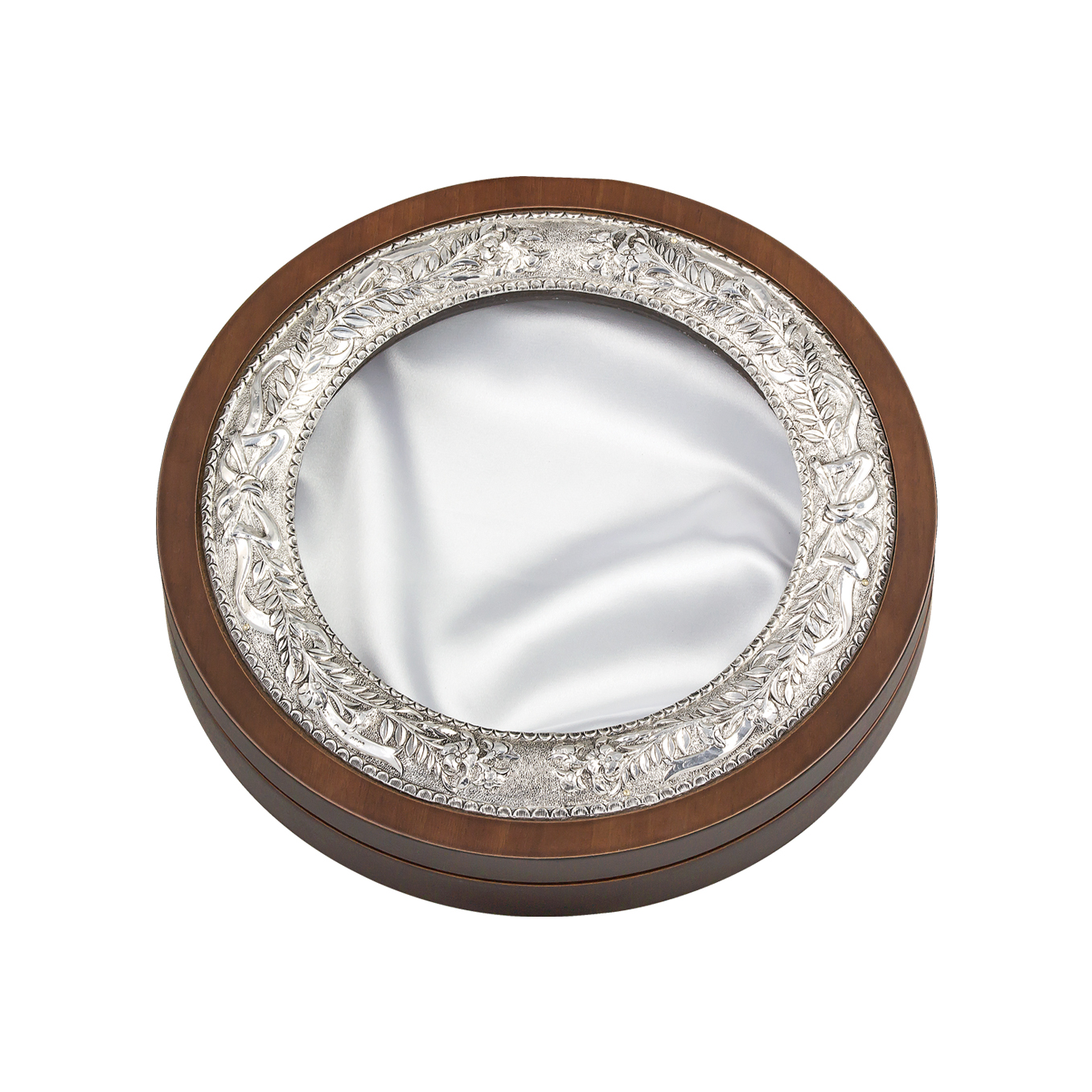 Ασημένια στεφανοθήκη 925° στρογγυλή σε διάσταση : 26 x 26 εκ.