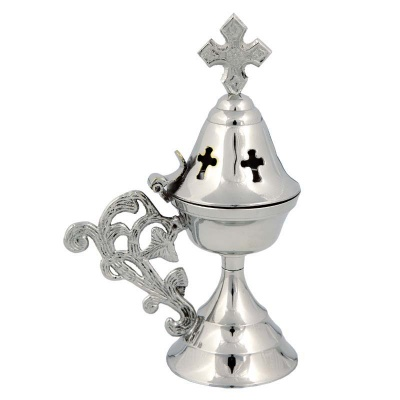 Θυμιατό οικιακό ορειχάλκινο λείο επινικελωμένο σε διάσταση : 14 εκ.