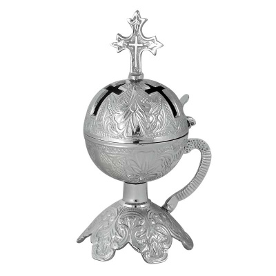 Θυμιατό οικιακό ορειχάλκινο σκαλιστό σφαιρικό επινικελωμένο σε διάσταση : 16 εκ.