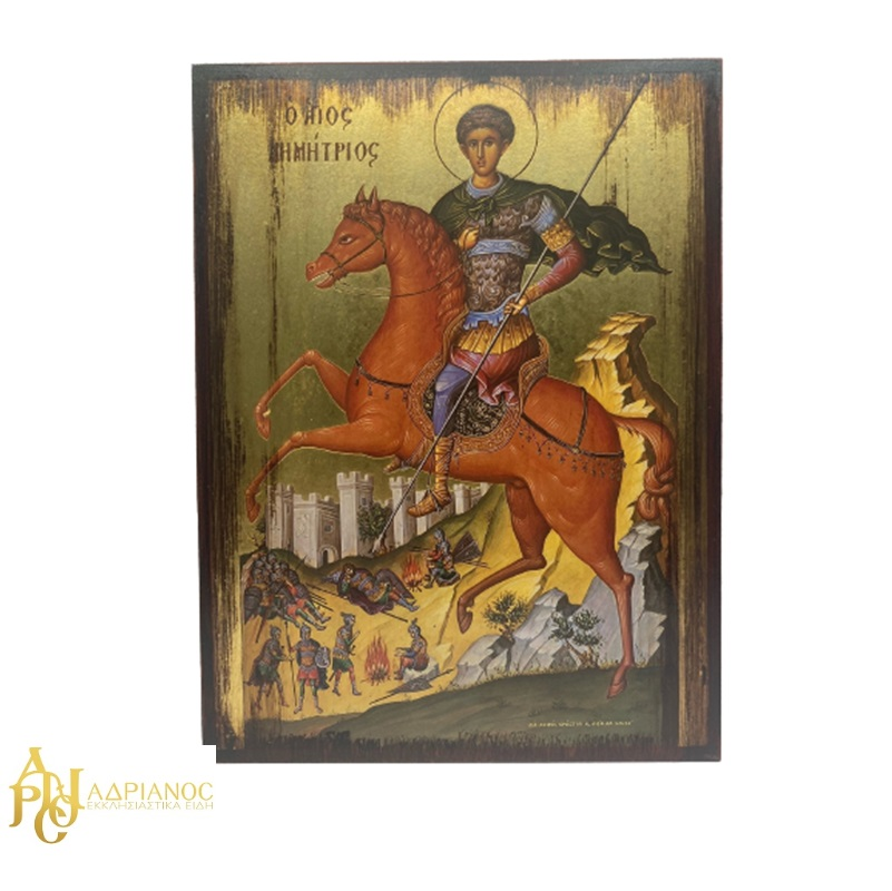 Άγιος Δημήτριος σε ξύλο MDF με χειροποίητη παλαίωση, φύλλο χρυσού και διάσταση : 15 x 10 εκ.