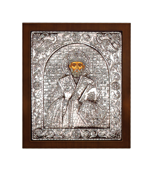 Άγιος Νικόλαος με φύλλο ασημιού 925° σε διάσταση : 27 x 22 εκ.
