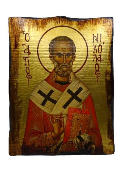 Άγιος Νικόλαος σε ξύλο έλατο με χειροποίητη παλαίωση, φύλλο χρυσού και διάσταση : 15 x 10 εκ.