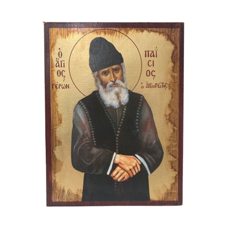 Άγιος Παϊσιος σε ξύλο MDF με χειροποίητη παλαίωση, φύλλο χρυσού και διάσταση : 20 x 15 εκ.