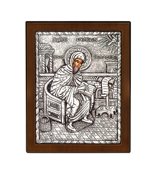 Άγιος Συμεών με φύλλο ασημιού και βάση σε διάσταση : 23 x 17 εκ.