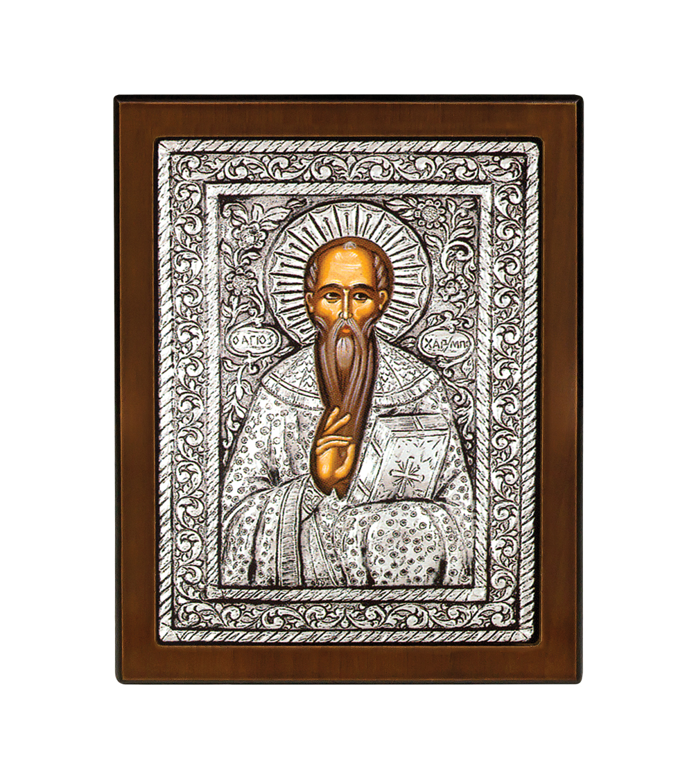 Άγιος Χαράλαμπος με φύλλο ασημιού και βάση σε διάσταση : 23 x 17 εκ.
