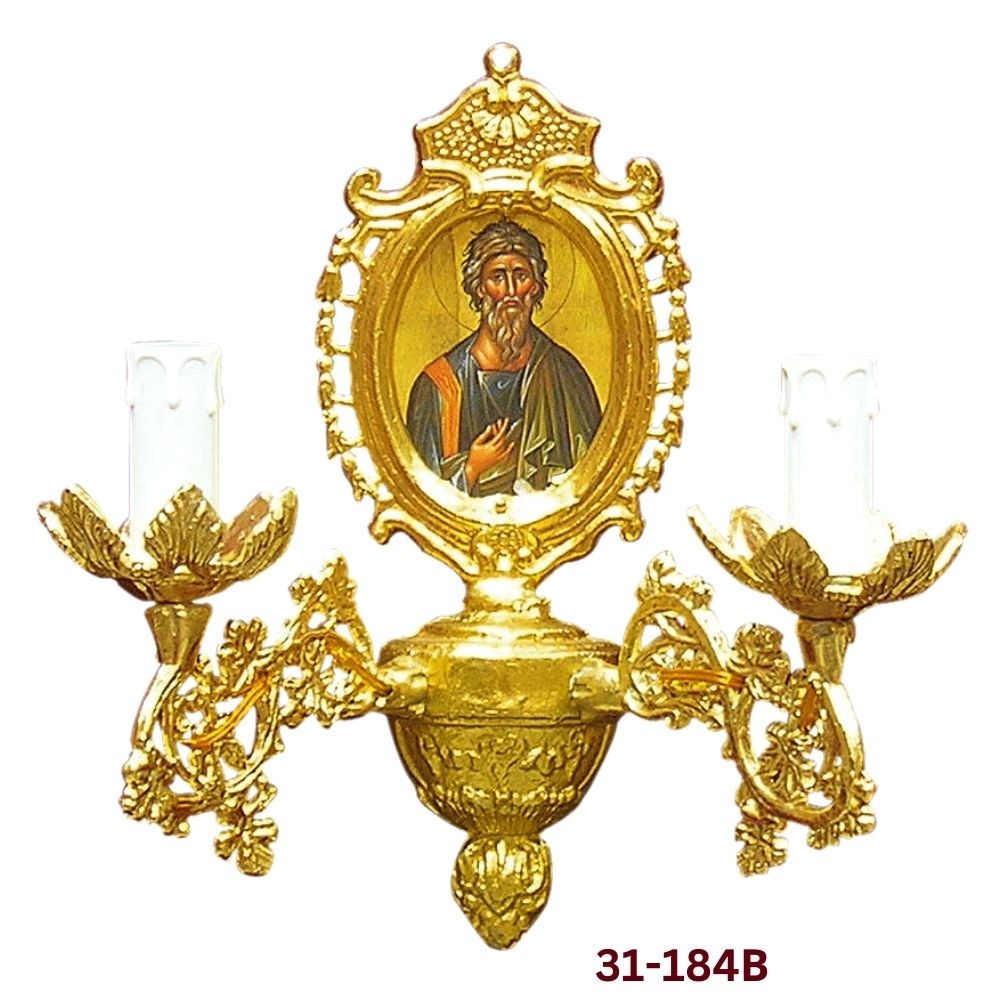 Απλίκα αλουμινίου με κορνίζα Αγίου και 2 φώτα σε 2 αποχρώσεις και διάσταση : 33 x 32 εκ.