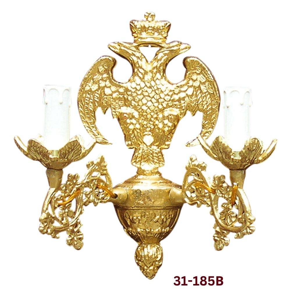 Απλίκα αλουμινίου με σχέδιο τον δικέφαλο αετό, 2 φώτα σε 2 αποχρώσεις και διάσταση : 32 x 32 εκ.
