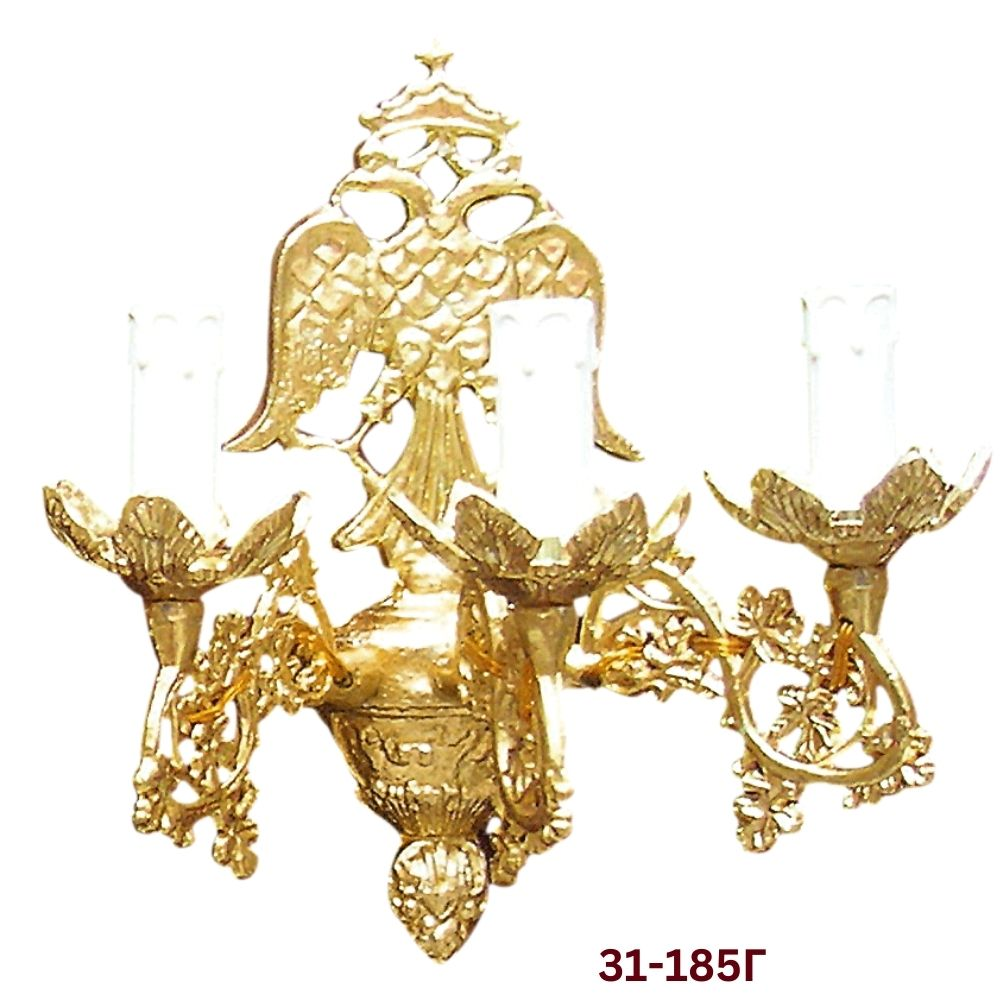 Απλίκα αλουμινίου με σχέδιο τον δικέφαλο αετό, 3 φώτα σε 2 αποχρώσεις και διάσταση : 32 x 32 εκ.