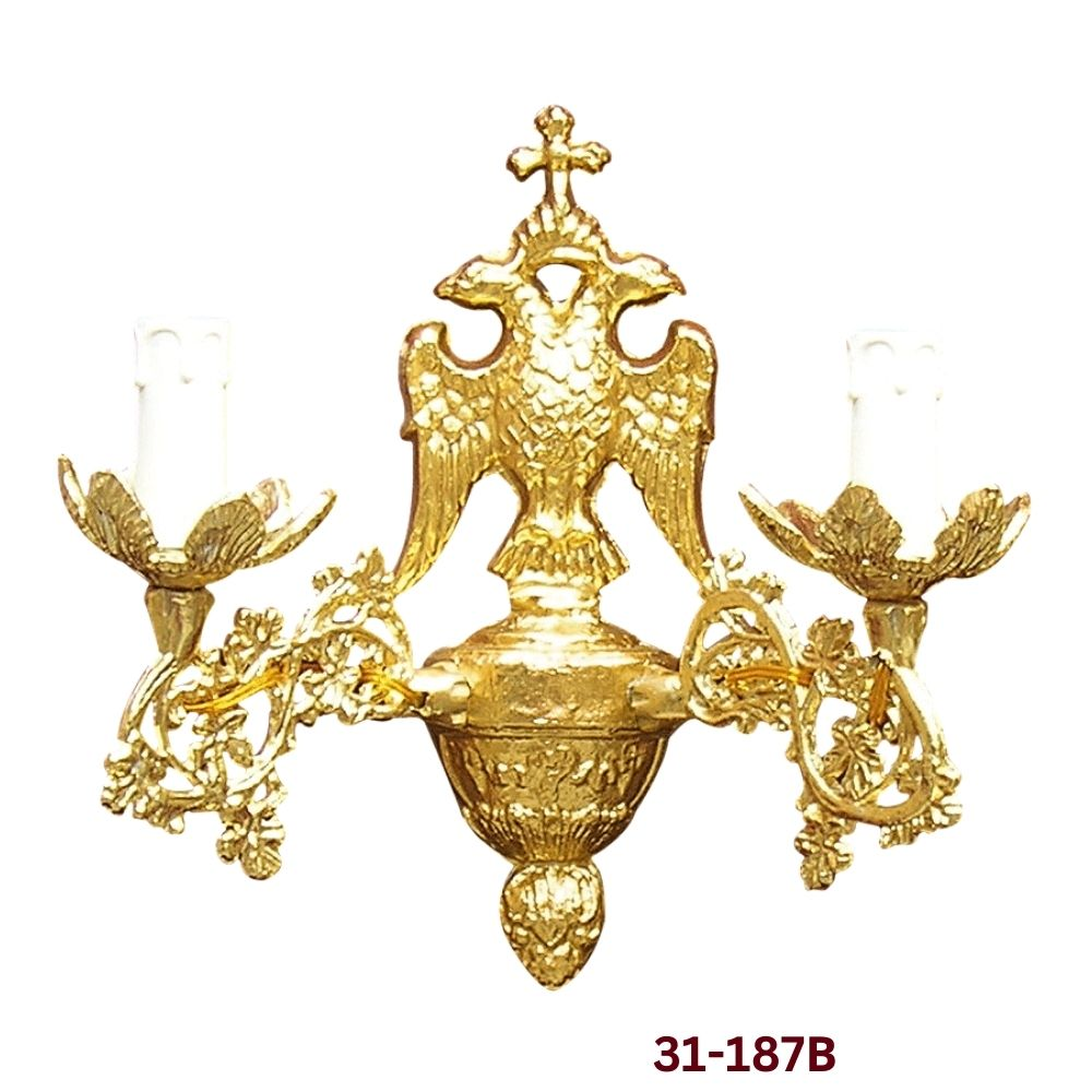 Απλίκα αλουμινίου με σχέδιο τον δικέφαλο αετό και 2 φώτα σε 2 αποχρώσεις και διάσταση : 30 x 32 εκ.