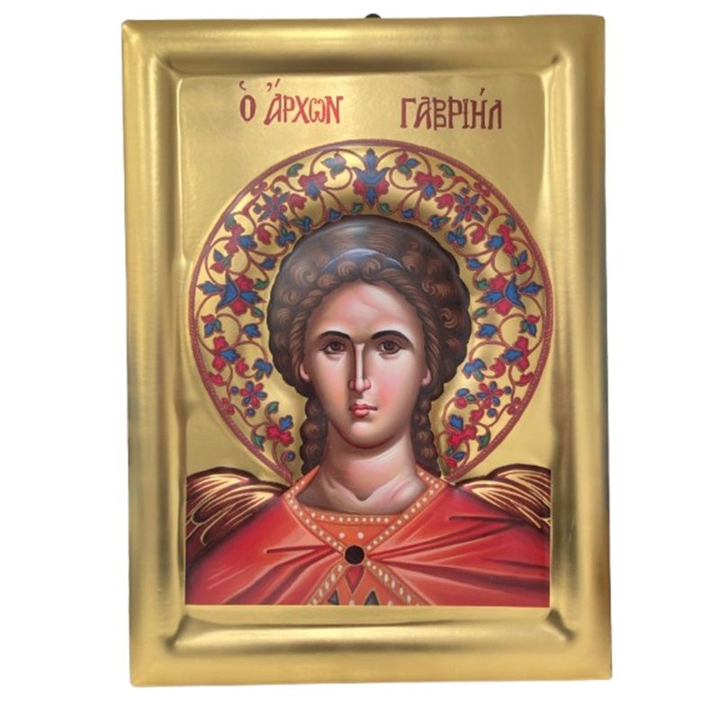 Αρχάγγελος Γαβριήλ σε αγιογραφημένη χειροποίητη μεταξοτυπία με φύλλο χρυσού 24K σε ξύλο πεύκο ρόμπολο και διάσταση : 55 x 40 εκ.