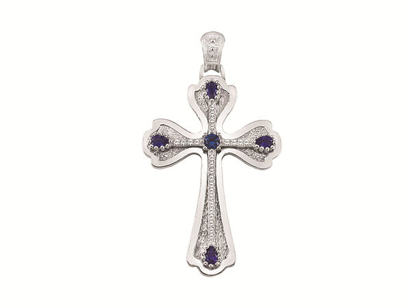 Επιστήθιος σταυρός περιπάτου επάργυρος με μπλε πετράδια, 7,6 x 4,4 εκ. , 30 γρ.