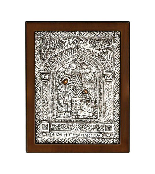 Ευαγγελισμός με φύλλο ασημιού και βάση σε διάσταση : 23 x 17 εκ.