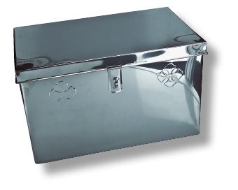 Οστεοθήκη για οστεοφυλάκειο ανοξείδωτη διπλή (για 2 ανθρώπους) ντυμένη σε χρώμα : ασημί και διάσταση : 48 (μήκος) x 29,5 (πλάτος) x 29 (ύψος) εκ.