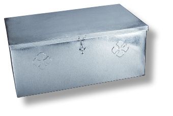 Οστεοθήκη για οστεοφυλάκειο γαλβανιζέ μονή ντυμένη σε χρώμα ασημί και διάσταση : 48 (μήκος) x 24,5 (πλάτος) x 22 (ύψος) εκ.