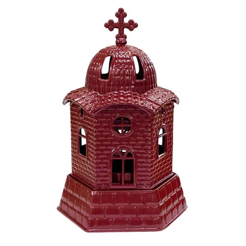 Καντήλι εκκλησάκι μεταλλικό μικρό σε χρώμα κόκκινο και διάσταση : 17 x 10 εκ.