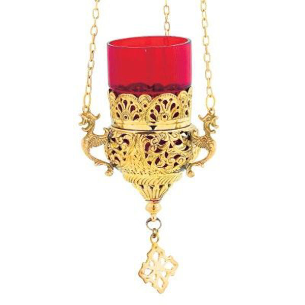 Καντήλι Εκκλησίας ορειχάλκινο κρεμαστό σκαλιστό επιχρυσωμένο σε διάσταση : 12 εκ.