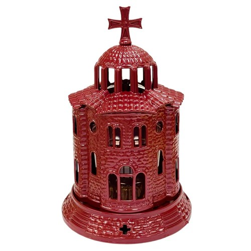 Καντήλι μεταλλικό εκκλησάκι μεγάλο σε χρώμα κόκκινο και διάσταση : 19 x 11 εκ.