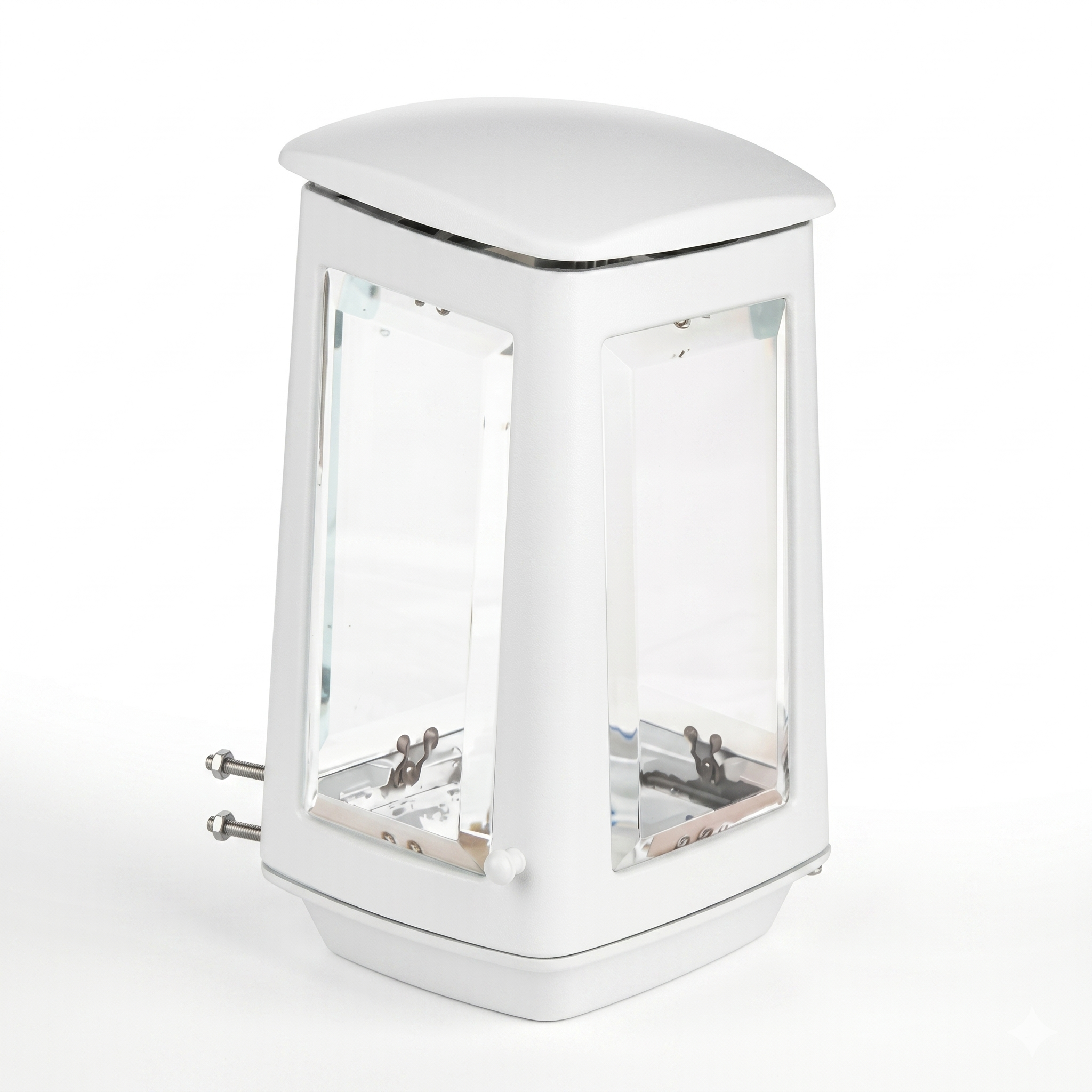 Καντήλι μνημείου από αλουμίνιο επίτοιχο με κρύσταλλο 8 χιλ. σε χρώμα άσπρο ματ και διάσταση : 26 x 16,5 εκ.
