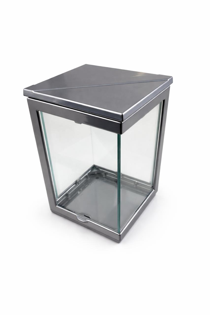 Καντήλι μνημείου από αλουμίνιο με κρυστάλλινα τζάμια σε χρώμα βαμμένο χρώμιο και διάσταση : 24 x 14 εκ.