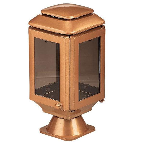 Καντήλι μνημείου από ορείχαλκο (αδιάβλητο στις καιρικές συνθήκες) τετράπλευρο σε χρώμα οξυντέ και διάσταση : 26 x 12 εκ.