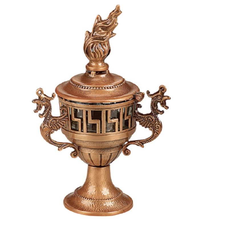 Καντήλι μνημείου από ορείχαλκο (αδιάβλητο στις καιρικές συνθήκες) με λαβές σε χρώμα οξυντέ και διάσταση : 26 x 14,5 εκ.