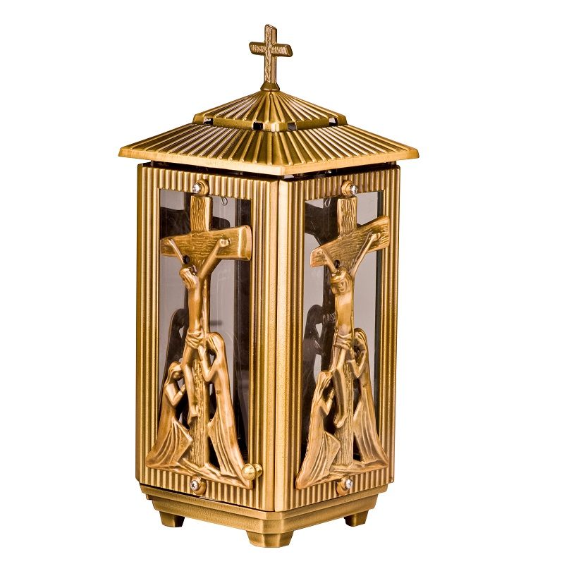 Καντήλι μνημείου από ορείχαλκο (αδιάβλητο στις καιρικές συνθήκες) τετράπλευρο σε χρώμα οξυντέ και διάσταση : 30,5 x 15 εκ.