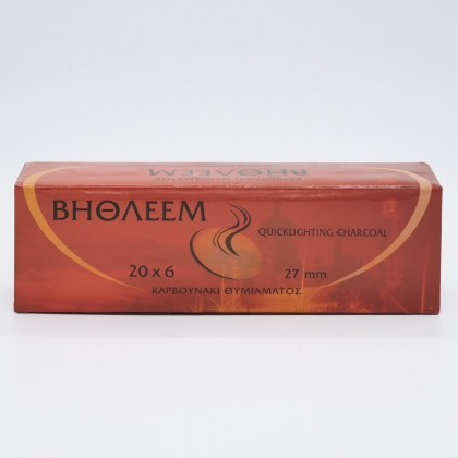 Καρβουνάκι Βηθλεέμ κόκκινο άκαπνο. Το κουτί περιέχει 20 μασουράκια. Το κάθε μασουράκι περιέχει 6 καρβουνάκια.