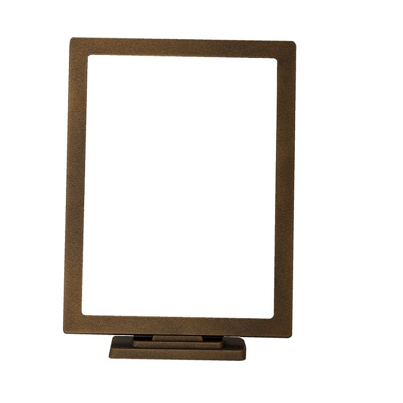 Κορνίζα μνημείου από αλουμίνιο παραλληλόγραμμη όρθια με βάση σε χρώμα λαδί και διάσταση : 11 x 15 εκ.