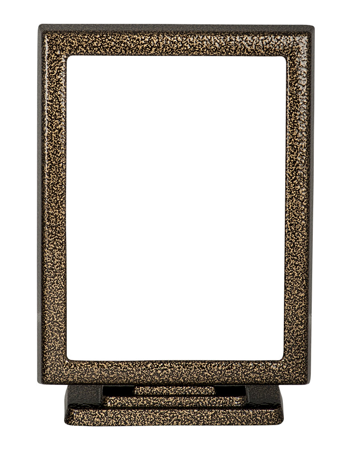 Κορνίζα μνημείου απόο αλουμίνιο με βάση σε χρώμα μαρτελέ μαύρο-χρυσό και διάσταση : 18 x 24 εκ.