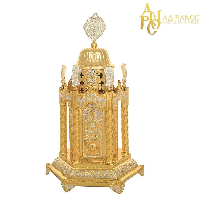 Αρτοφόριο ορειχάλκινο εξάγωνο σκαλιστό μικρό δίχρωμο με αρχαγγέλους σε διάσταση : 38 (ύψος) x 23 (μήκος) x 23 (πλάτος) εκ.