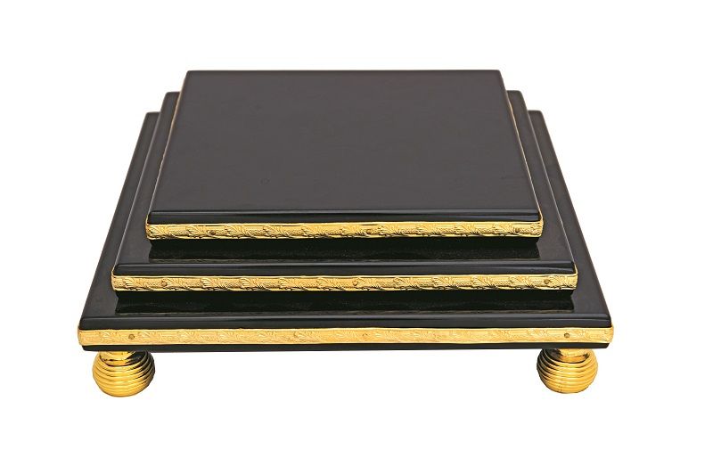 Βάση αρτοφορίου ορειχάλκινη τετράγωνη λεία επίχρυση με λάκα σε διάσταση : 10 (ύψος) x 32 (μήκος) x 32 (πλάτος) εκ.